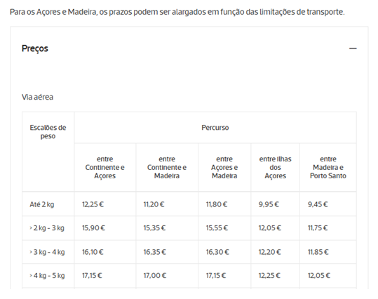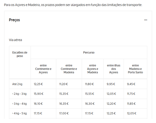 Fonte: ctt.pt/particulares/enviar/para-portugal/encomenda-postal